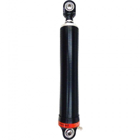 The 4200 Series shock is a large body mono-tube (gas) shock with a hard black anodized aluminum body and canister if choosing that option. This shock uses CNC machined aluminum internal parts designed for racing with no aftermarket parts. Most large body mono-tube shocks have too much rod pressure which removes driver feel and causes the race car to feel like it is on top of the track. This shock gives the driver more feel and allows the car to grip the track more. This shock utilizes a base valve that is installed between the floating piston and the valving piston to isolate the pressure, allowing for substantial reduction in rod pressure. These rebound and compression adjustable shocks contain check valves to ensure no bleed-over when adjusting the rebound and compression dampening. This shock has a Schrader valve that provides for fine tuning the chassis balance. This shock accepts 2 ½” I.D. or 5” O.D. Springs and is available in 5”, 6”, 7”, 8” & 9” shaft lengths.
